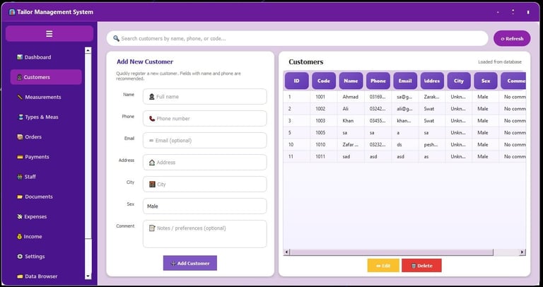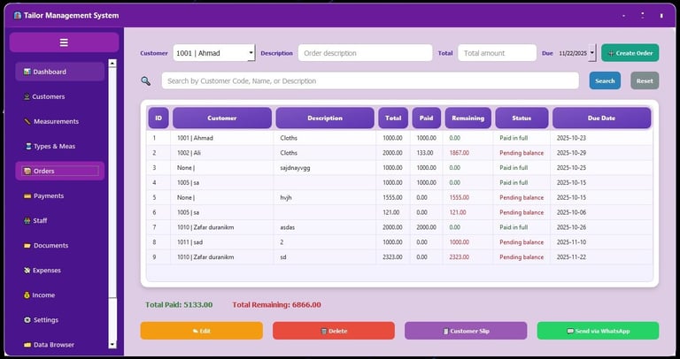 Manage customers, measurements, orders, and payments efficiently in one integrated system